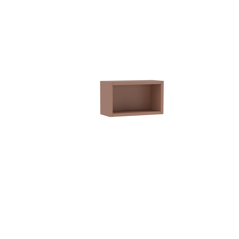 En complément une ligne de modules, niches et colonnes de rangement en laqué terre cuite ou vert sauge.